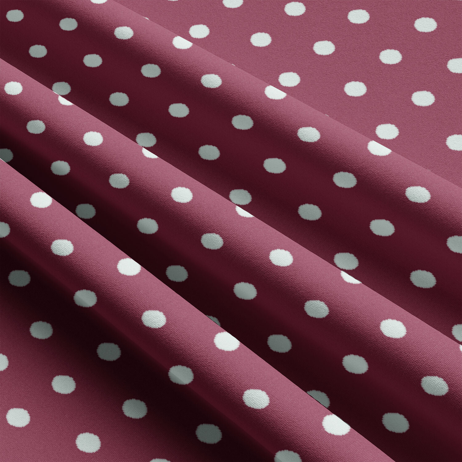 Dětské bavlněné látky, metráž. Puntík 22 mm, bílý na Amarantovém
