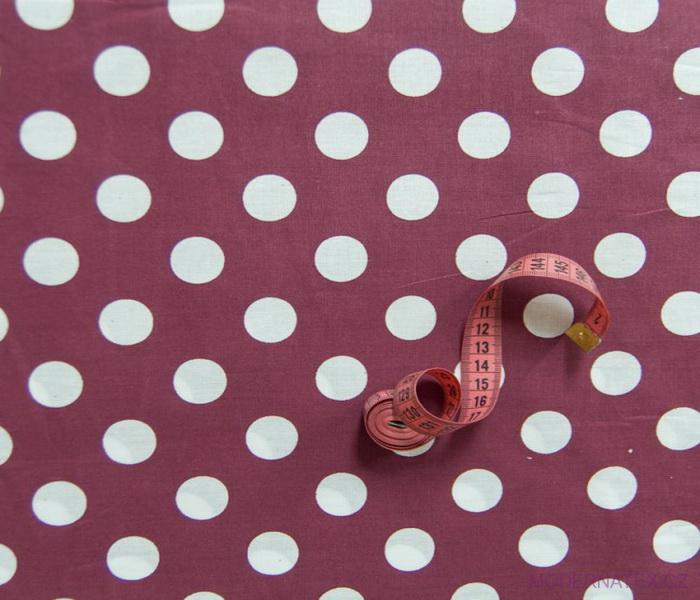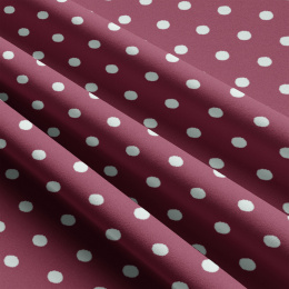 Popis Dětské bavlněné látky, metráž. Puntík 22 mm, bílý na Amarantovém
