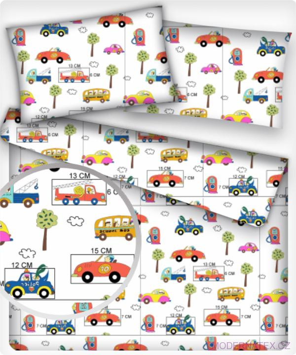 Popis Dětská bavlněná látka metráž Autičká mix na Bílém