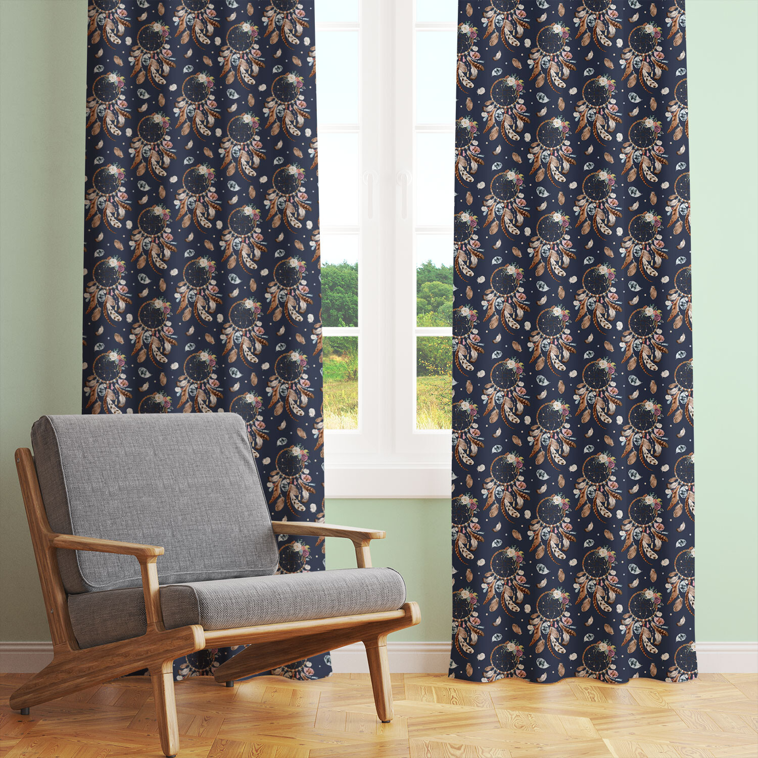 Popis Dětská bavlněná látka metráž Lovec snů na Modrém