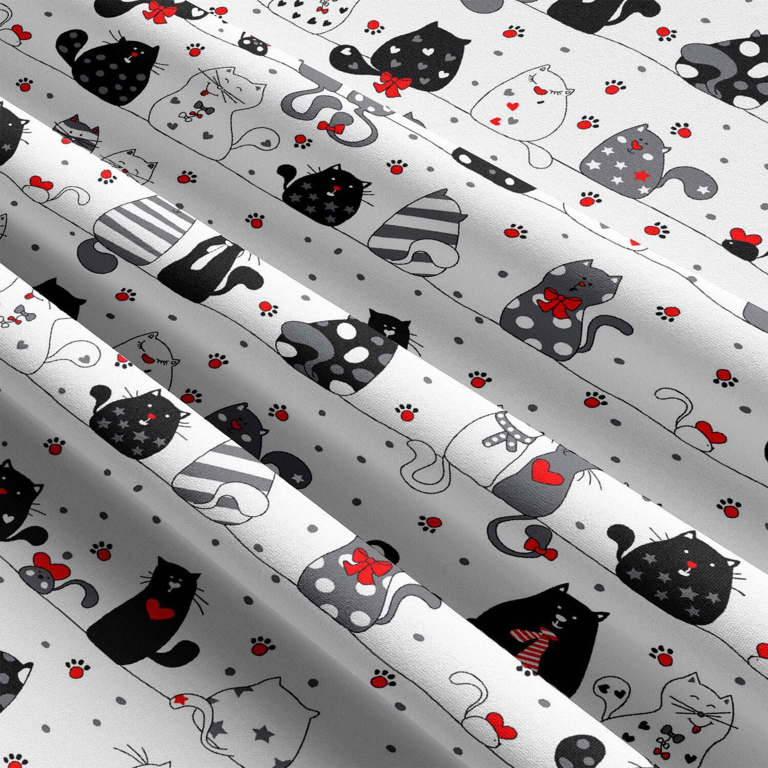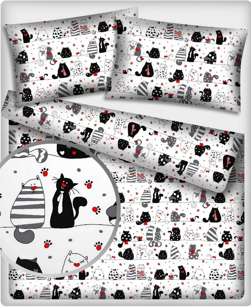 Popis Bavlněná látka, metráž. Crazy cat na Bílém