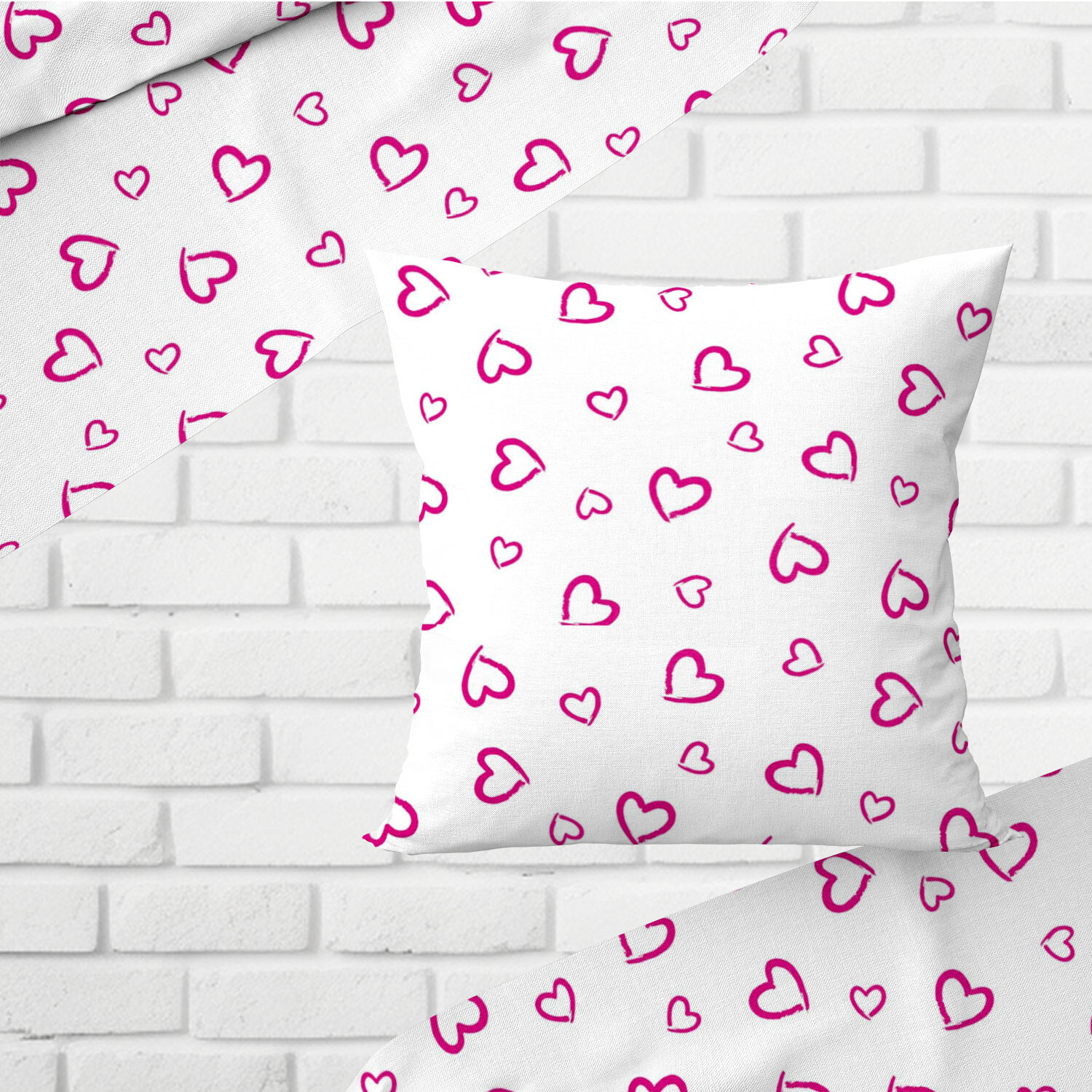 Dekorační bavlněná látka, metráž, Srdíčka Růžová na Bílém