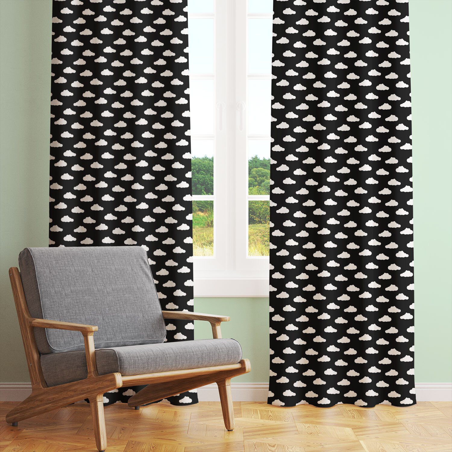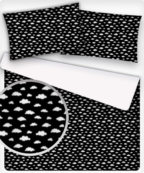 Description Cotton fabric 100% cotton, 125 g/m², width 160 cm, white cloud on black