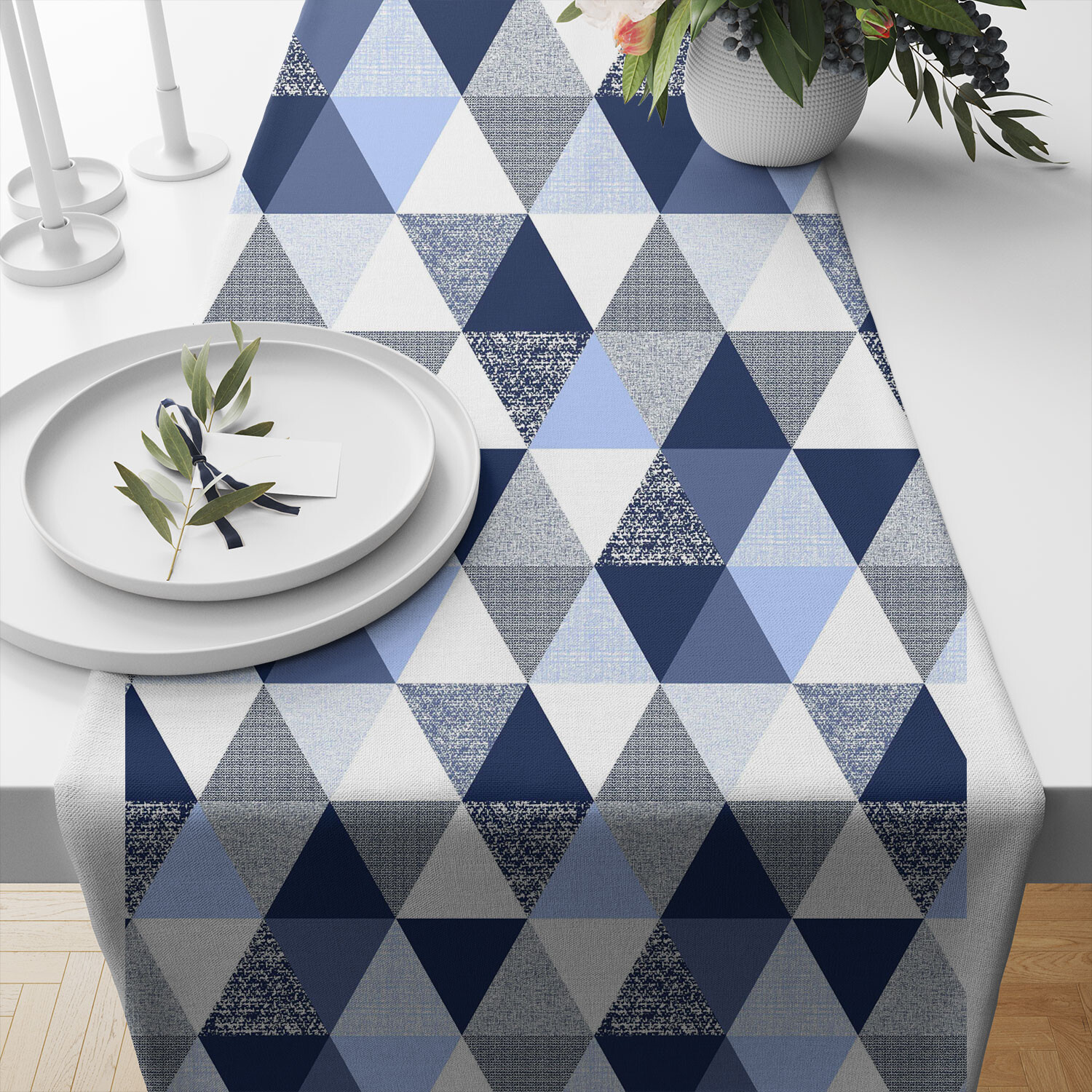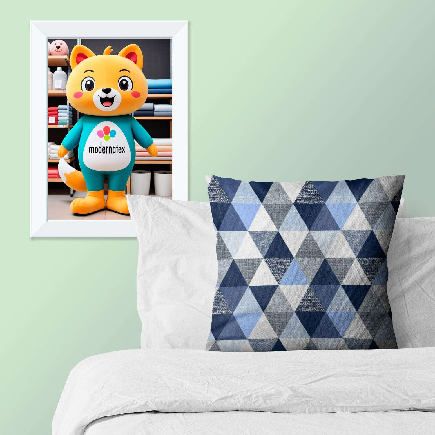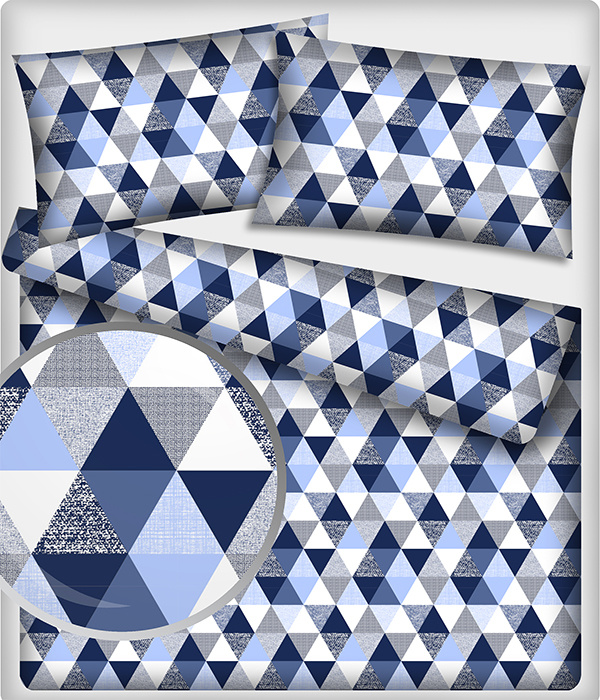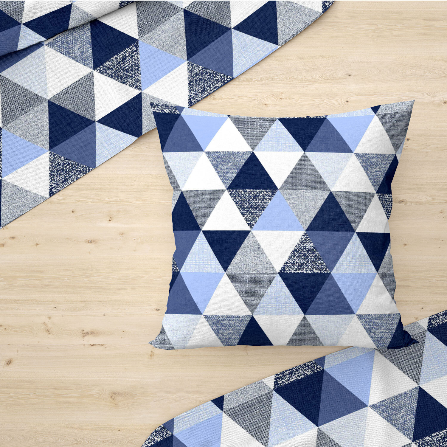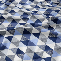 Description Cotton fabric 100% cotton, 125 g/m², width 160 cm, blue triangles 9 cm