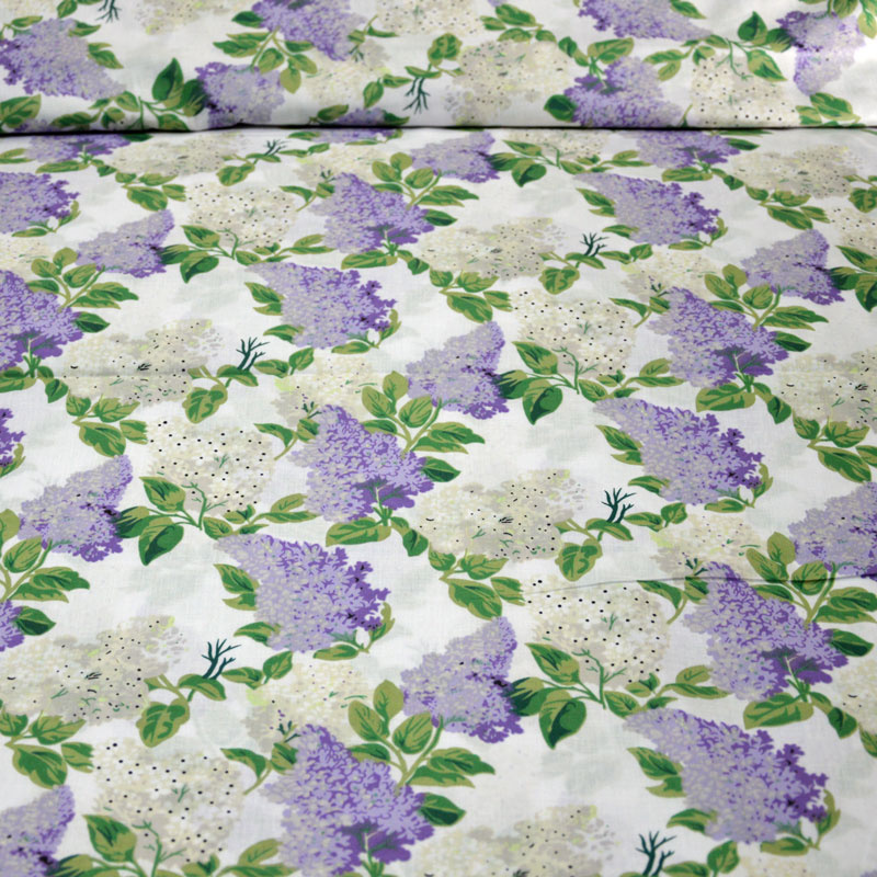 Description Cotton fabric 100% cotton, 125 g/m², width 160 cm, gray lilac branches on white