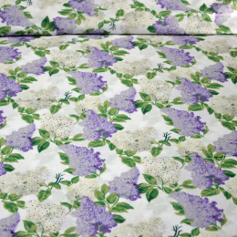 Cotton fabric 100% cotton, 125 g/m², width 160 cm, gray lilac branches on white