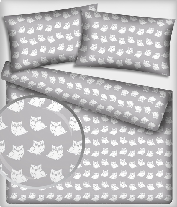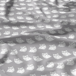 Description Cotton fabrics, by the meter. Owls on the Grey
