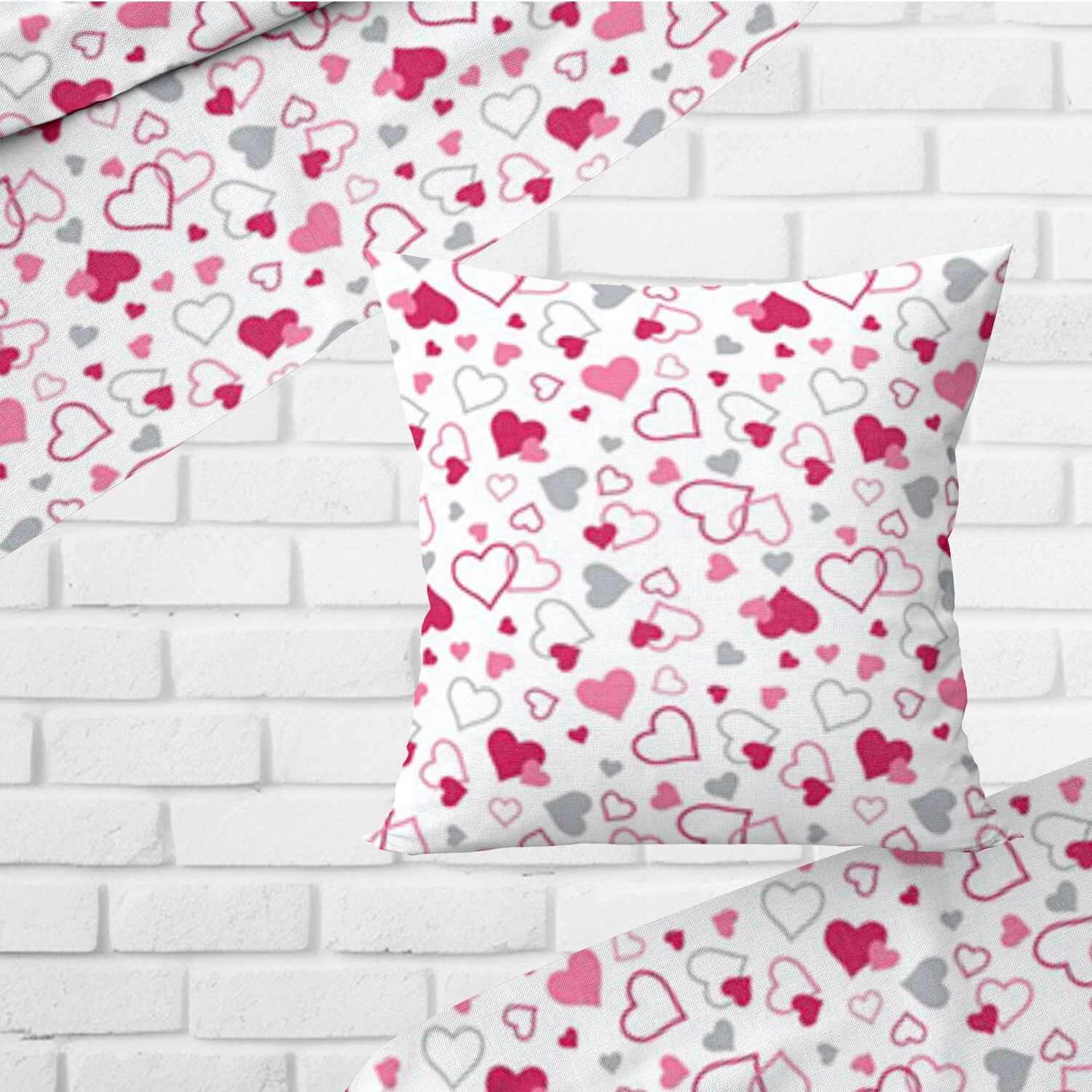 Description Decorative cotton fabric, by the meter, Valentine's Pink on White