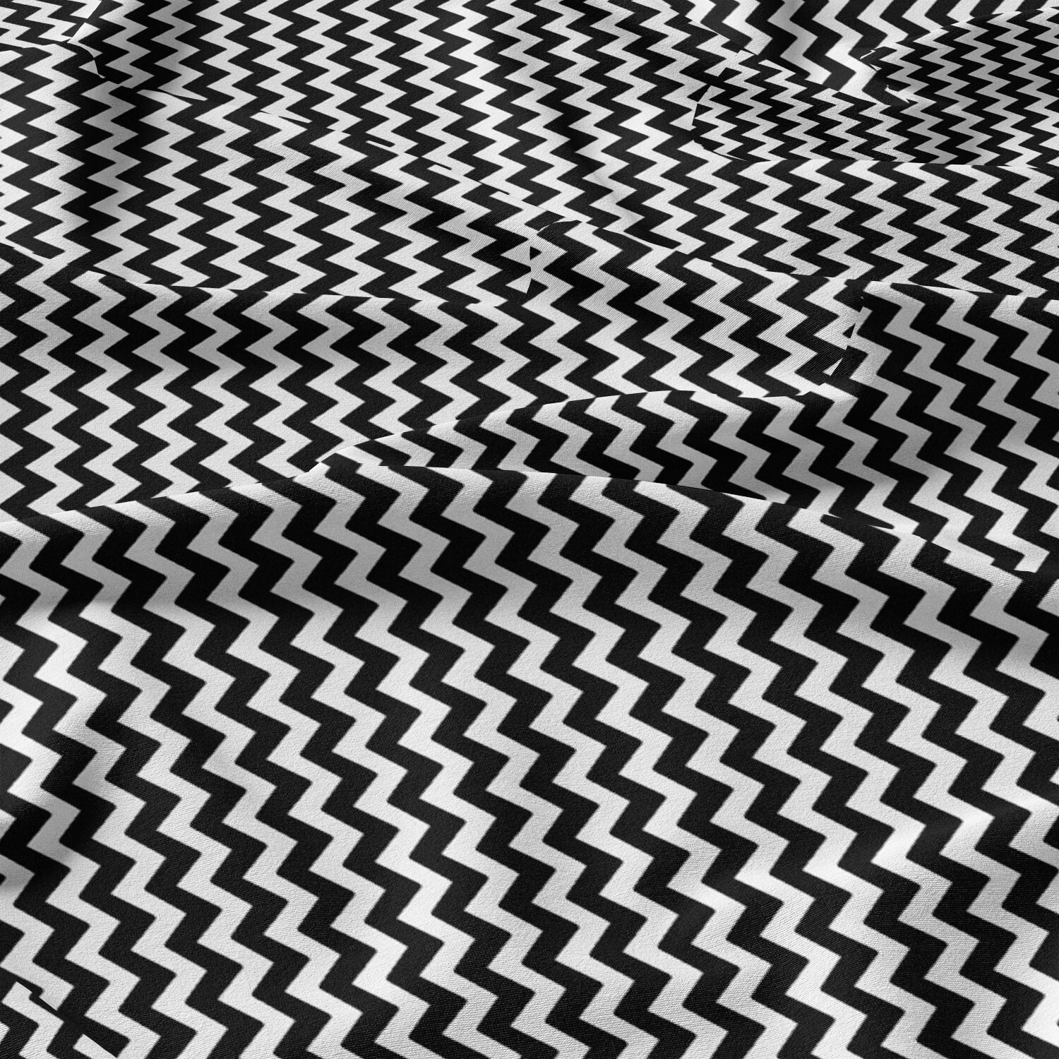 Decorative children's cotton fabrics, by the meter. Zigzag black