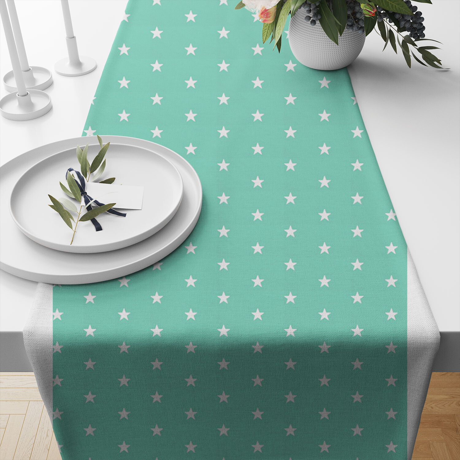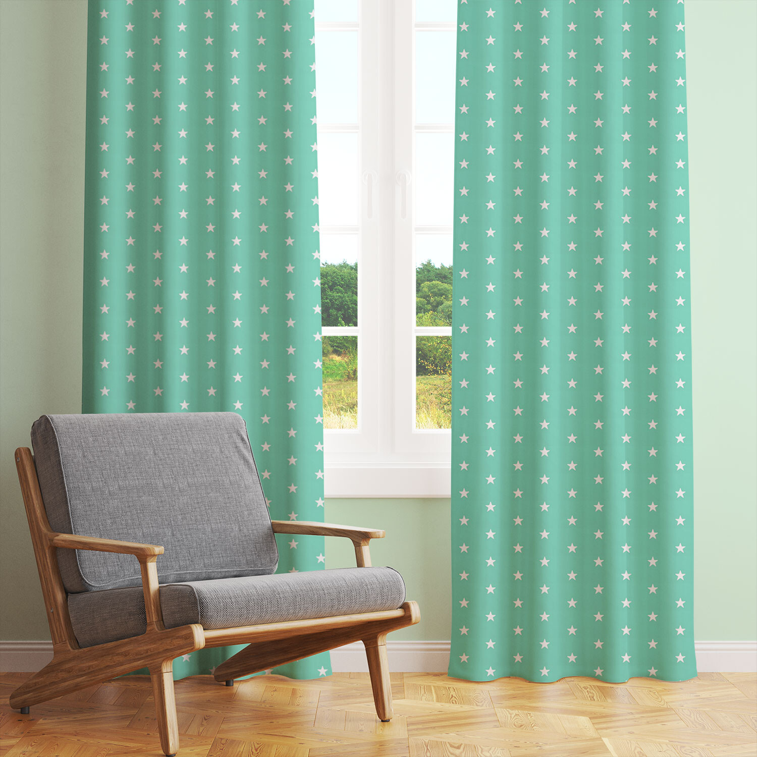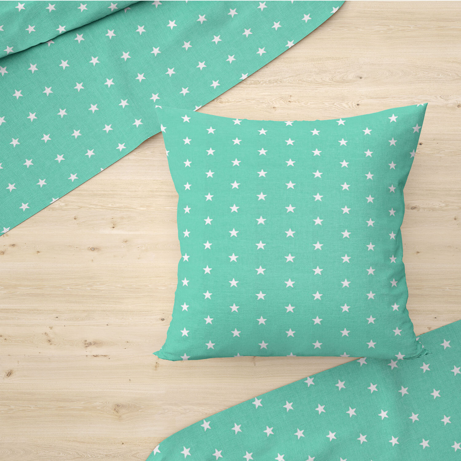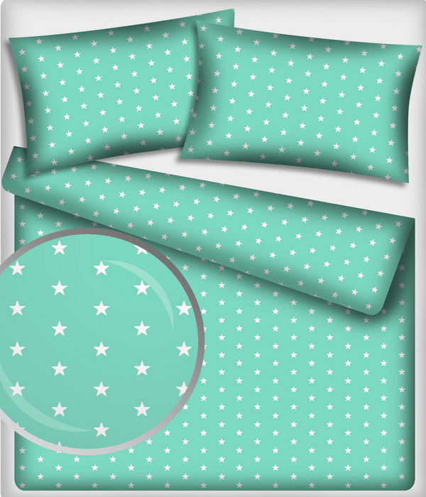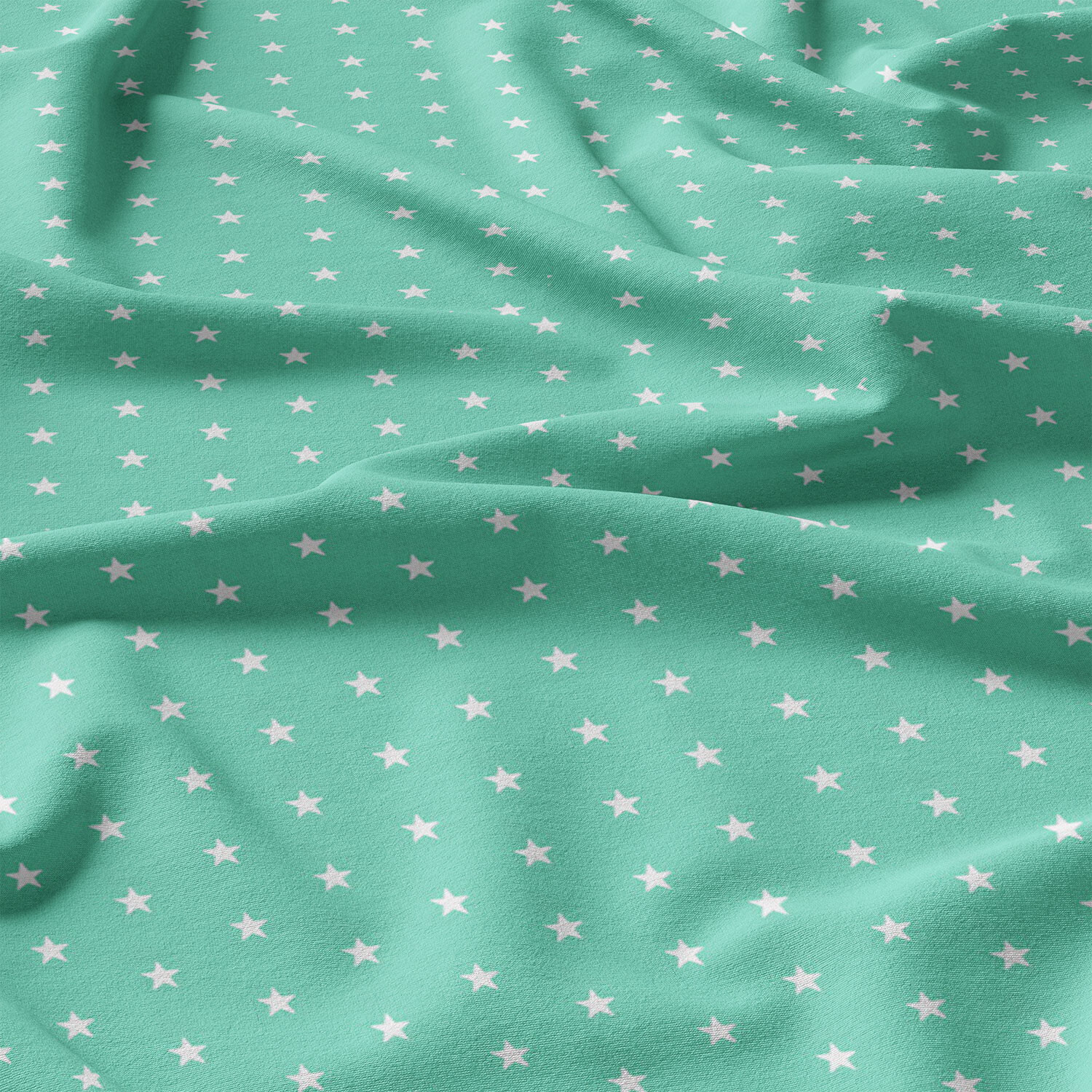 Description Children's cotton fabric 100% cotton, 125 g/m², width 160 cm, white stars on mint