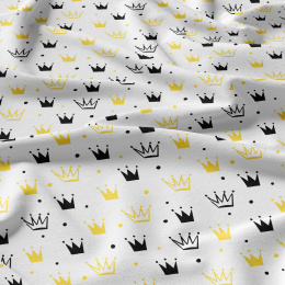 Children's cotton fabric 100% cotton, 125 g/m², width 160 cm, yellow crowns on white
