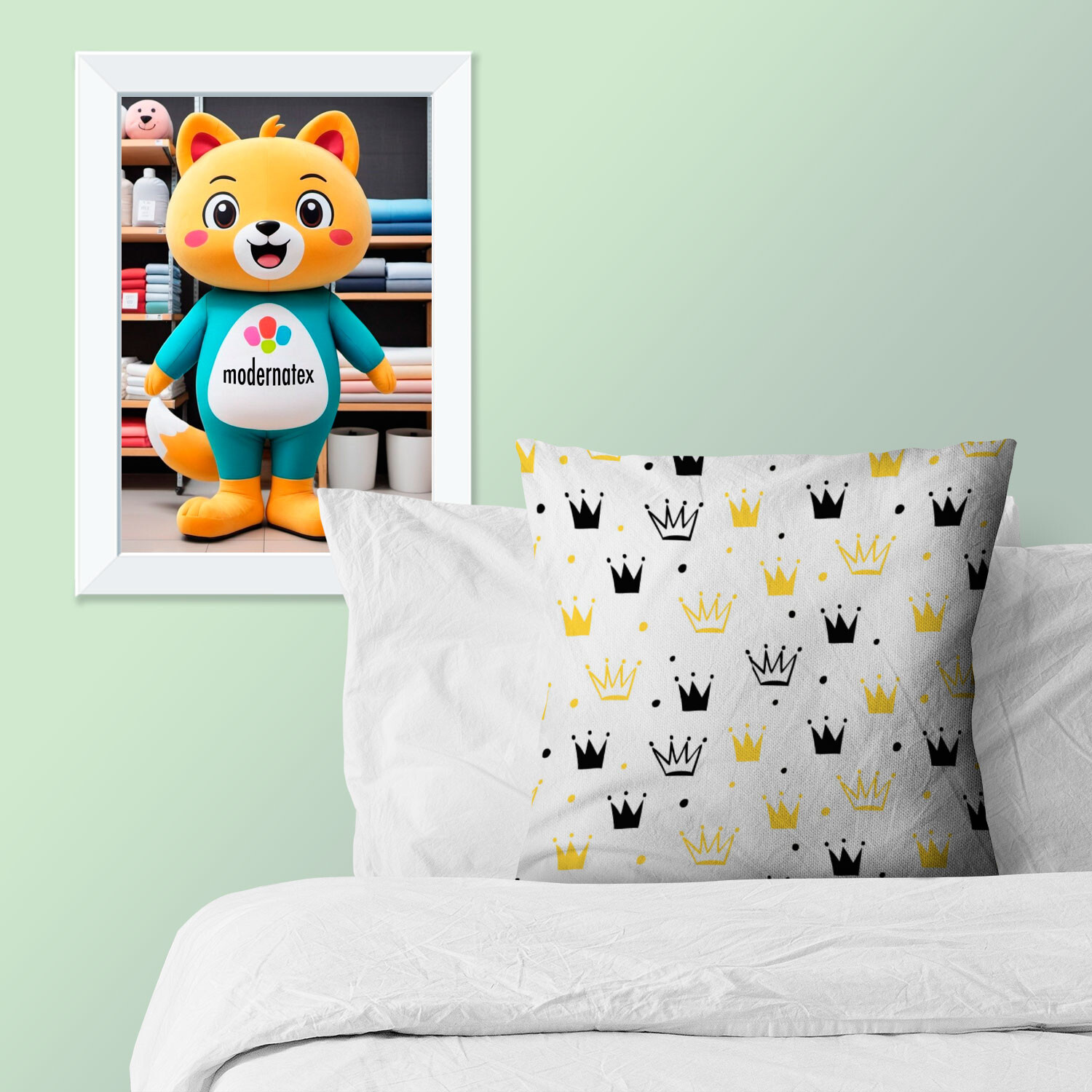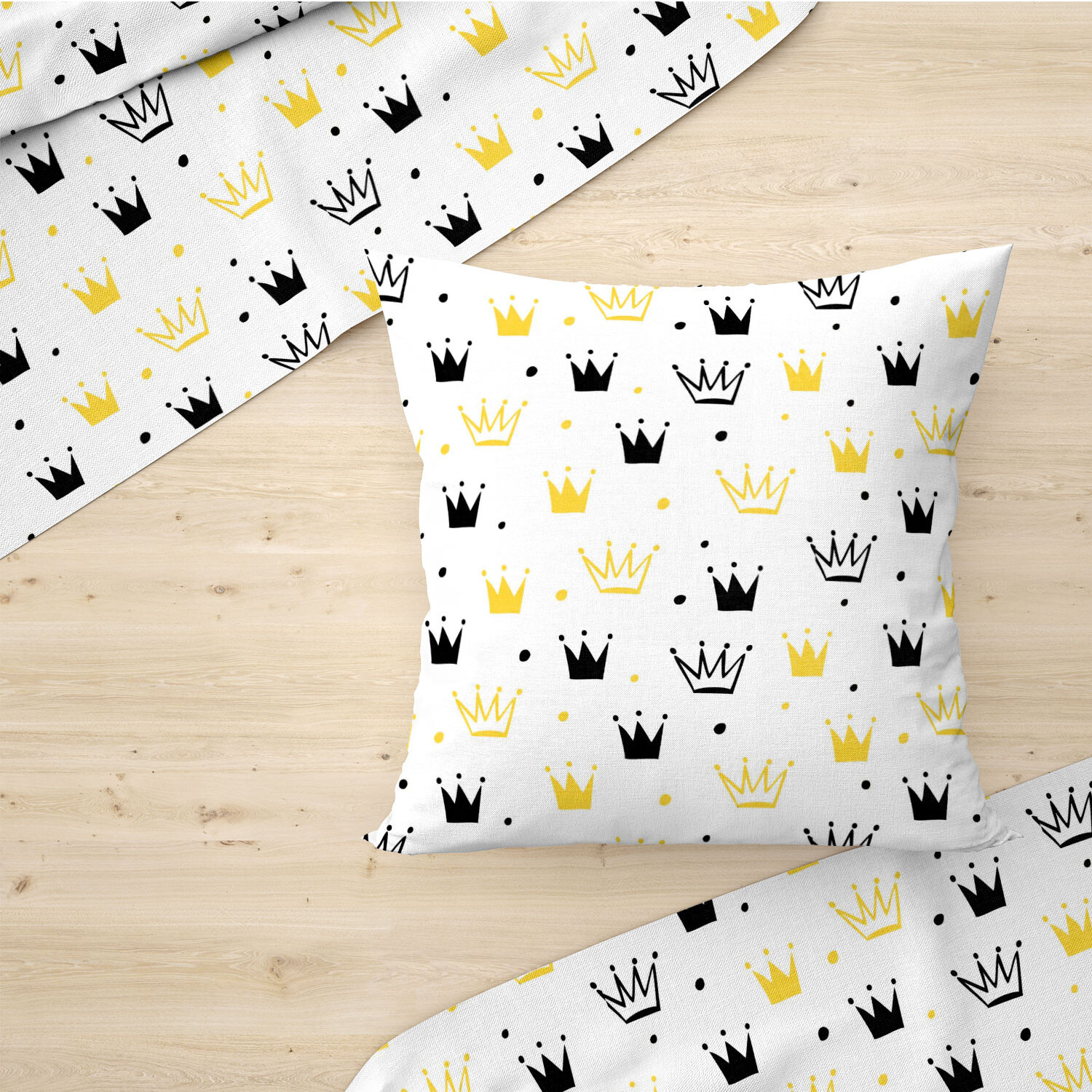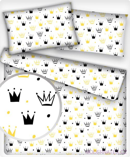 Description Children's cotton fabric 100% cotton, 125 g/m², width 160 cm, yellow crowns on white