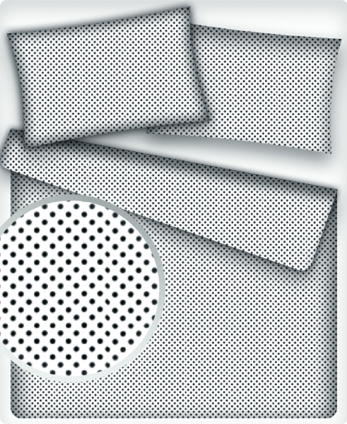 Description Children's cotton fabrics, by the meter. Dot 4 mm, black on white