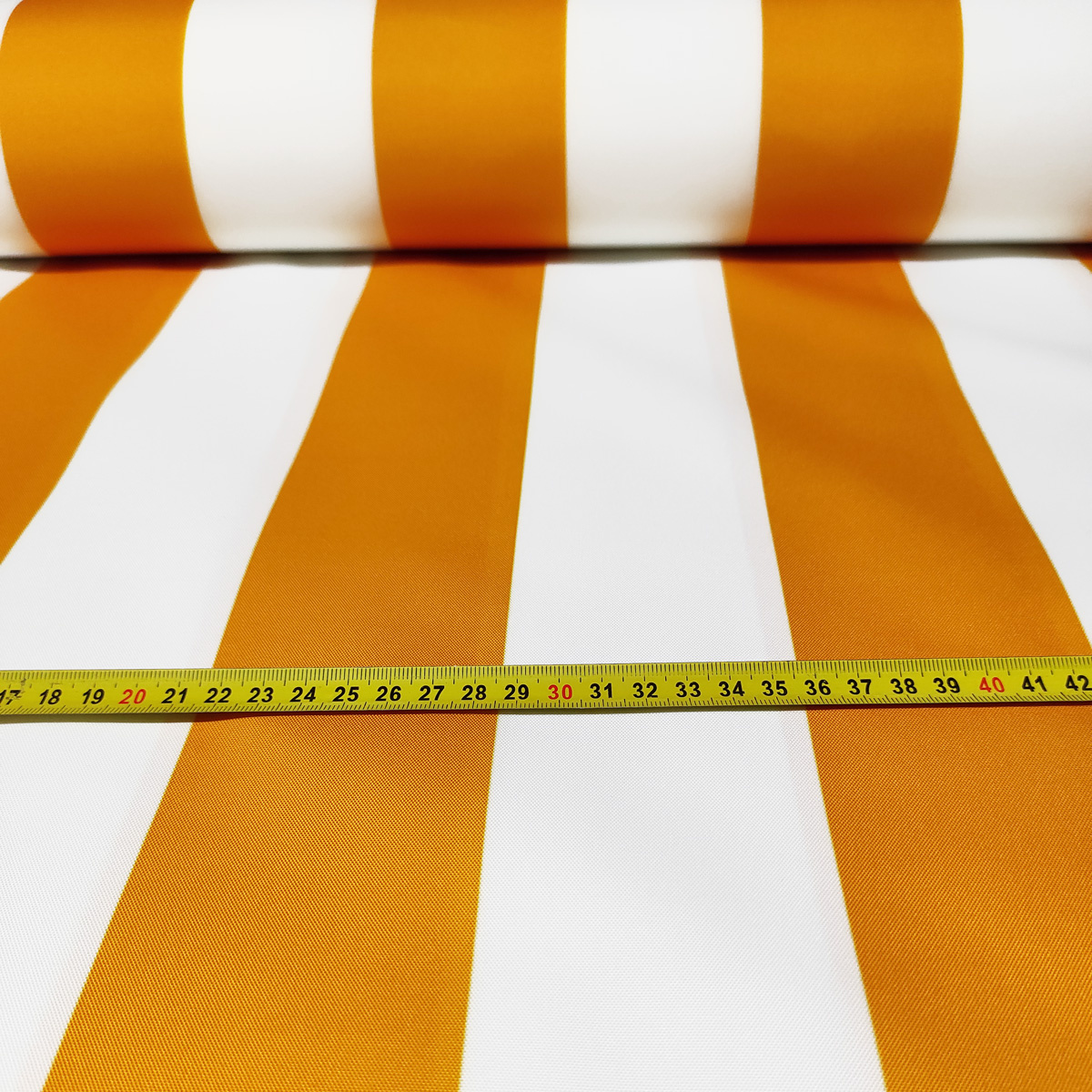 - husté pletení odolné vůči mechanickým vlivům - vnitřní krycí vrstva polyuretanem a teflonem na druhé straně tkaniny (bezbarevní nátěr) - měkká krycí vrstva téměř nepostřehnutelná - složení látky: 100% polyester - šířka 160 cm +/- 2 cm - gramáž 190 gr/m2 - nepromokavá látka - norma PN-EN 71-3: 2013-07E (bezpečnost hraček) - odolnost barviv proti ultrafialového záření (vyblednutí na slunci) - látka může být šitá pomocí domácího stroje Látka je odříznuta z role 160 cm široké, zakoupením jednoho kusu, dostanete kus 100x160 cm. Pokud si koupíte několik kusů látky, dopravíme je v jednom kuse. Směr pruhovaného vzoru: po celé délce tkaniny
