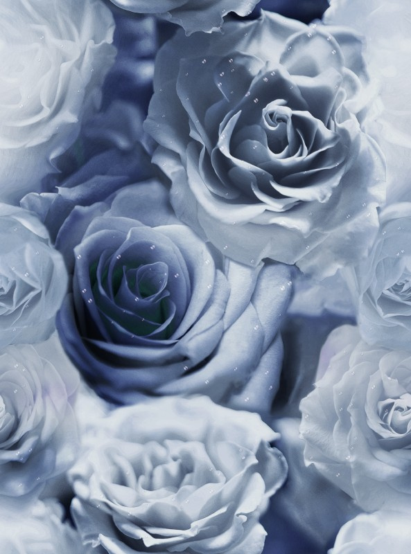 Velurové potahové látky s potiskem, Růže Modré a Bílé