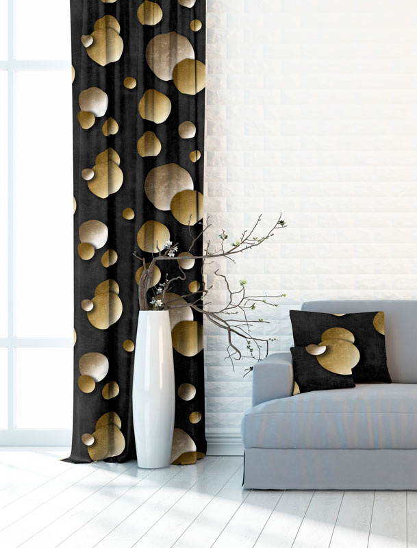 Velurové potahové látky s potiskem, Žluté koule na Černém
