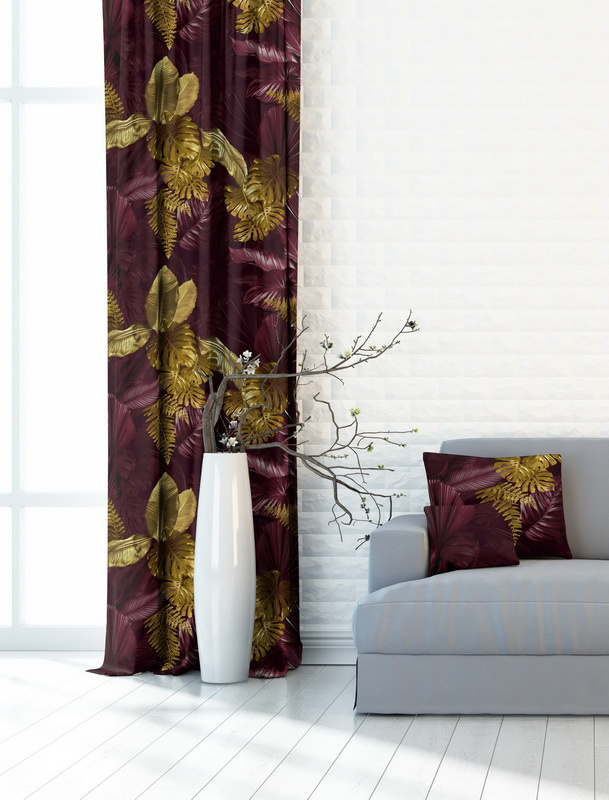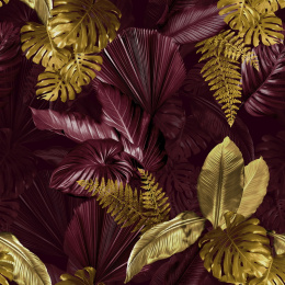 Velurové potahové látky s potiskem, Žluté tropické listy