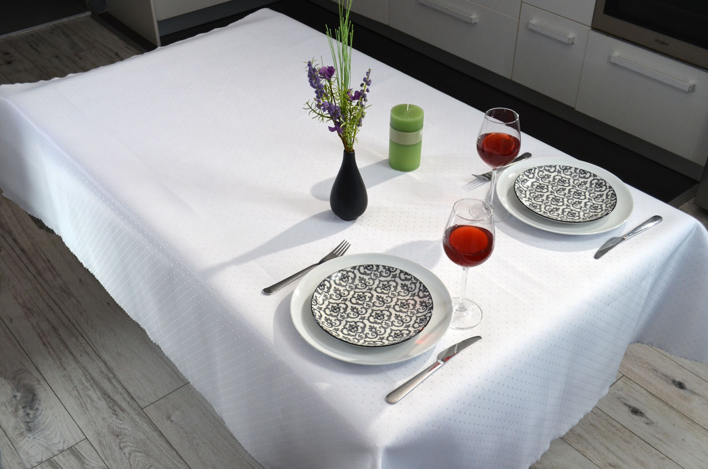 Vodoodpudivý ubrus Pois, 110x160 cm barva Bíla, odolný vůči skvrnám