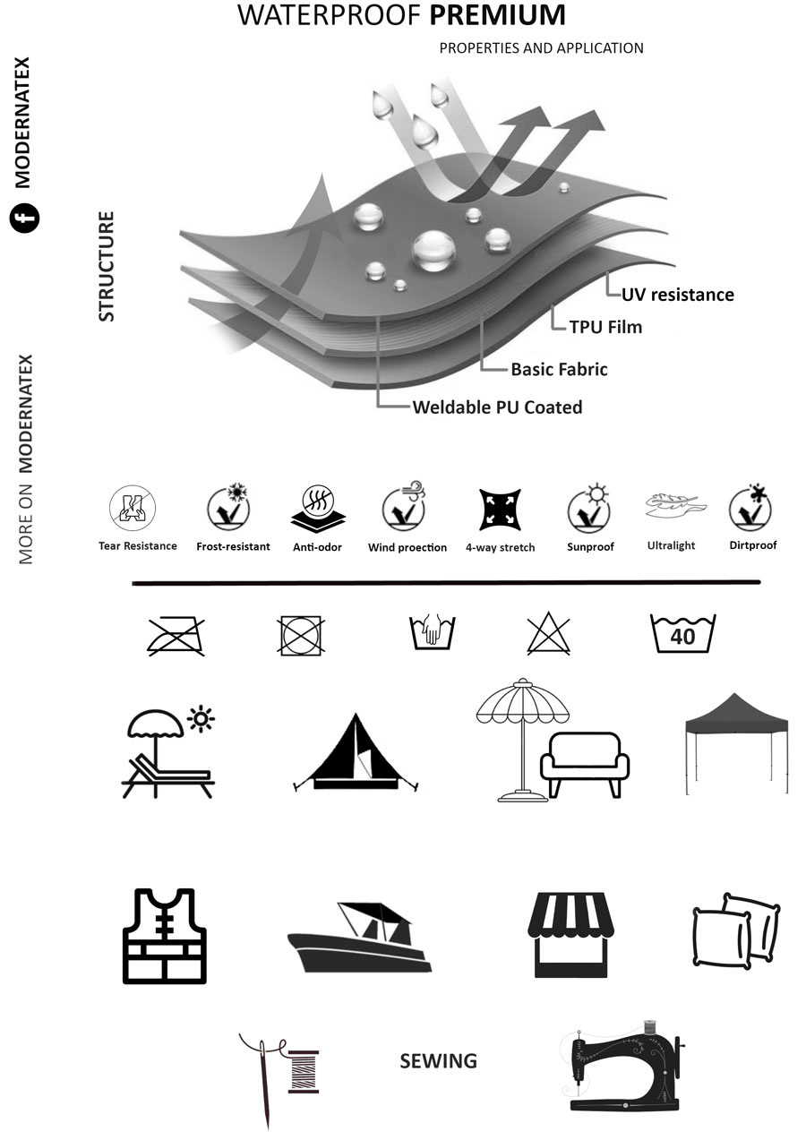 Popis Voděodolná látka Premium, 190 g/m², šíře 160 cm, černá